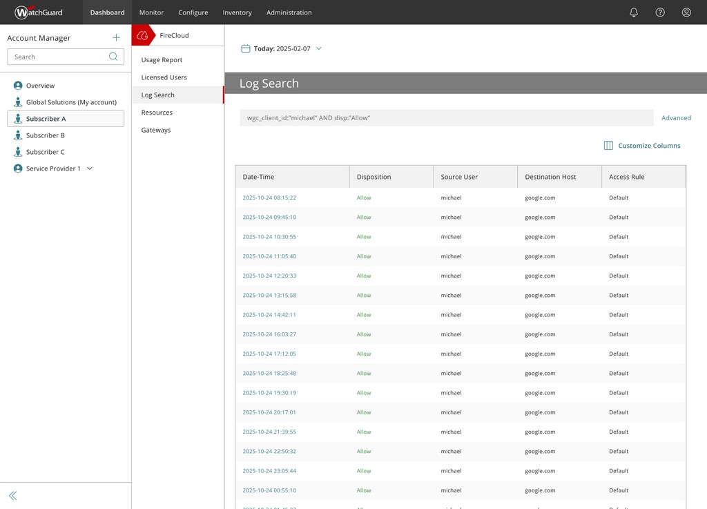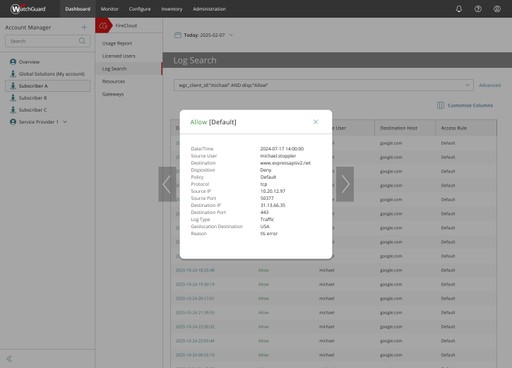 This new log search (which was introduced in the new FireCloud product) was received with amazing praise from customers and sales. Search queries improved to a staggering 96% success rate after switching to this experience and the amount of time spent on this page was cut by 40%. So many customers loved the new log search experience that other teams in WatchGuard were pressured into implementing the same UI sooner for their products sooner than they had planned.